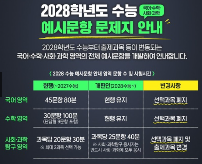 2028 수능부터는 국어랑 수학에서 더 이상 선택과목이 없고,